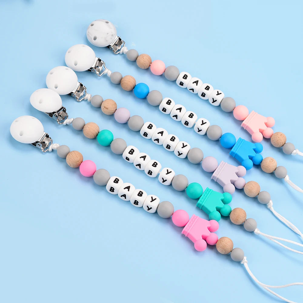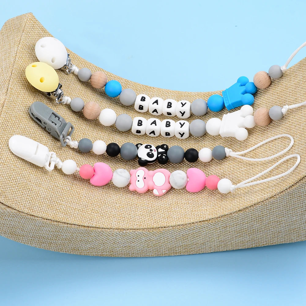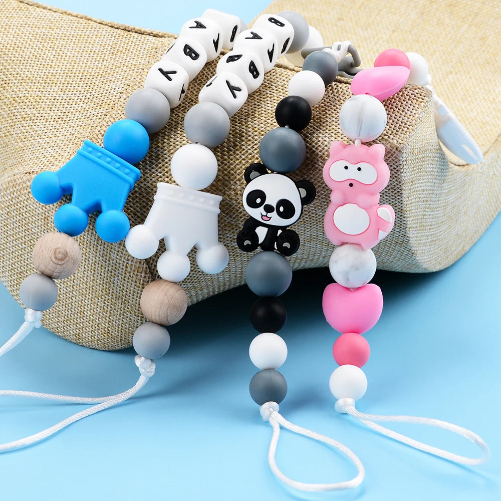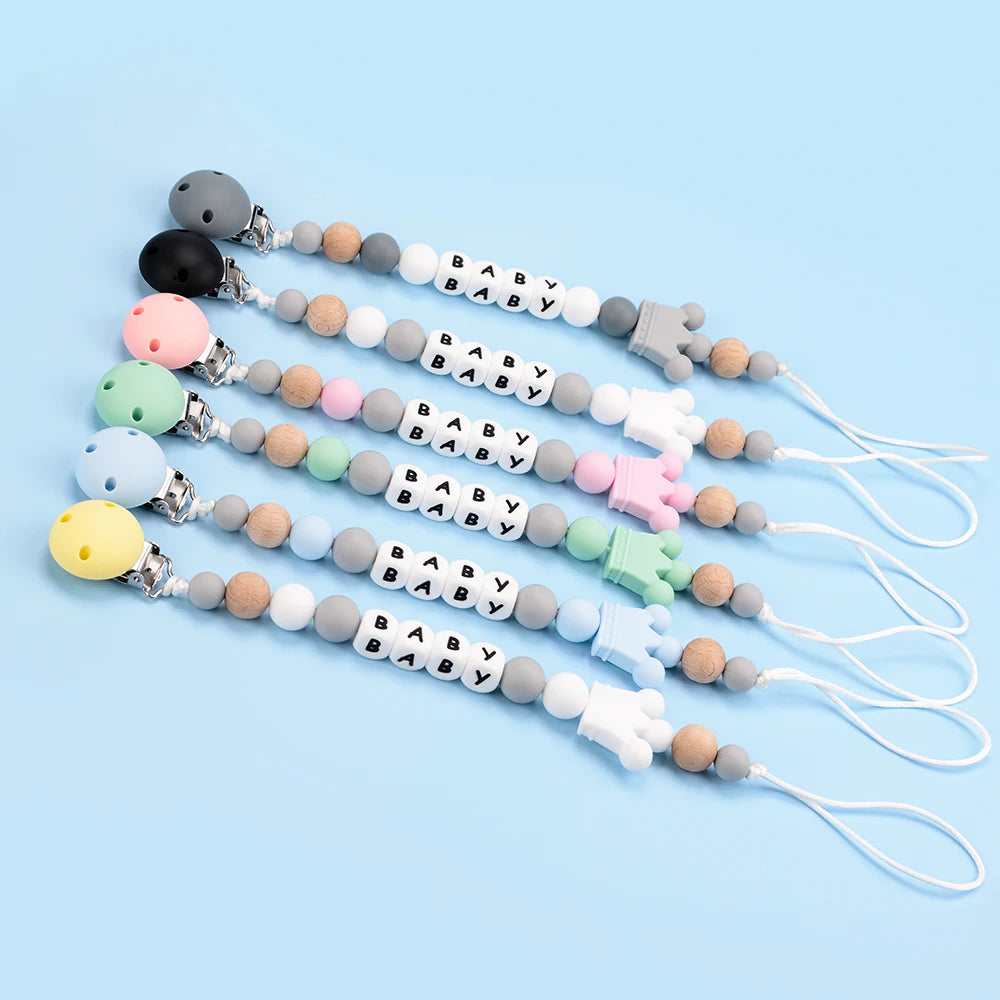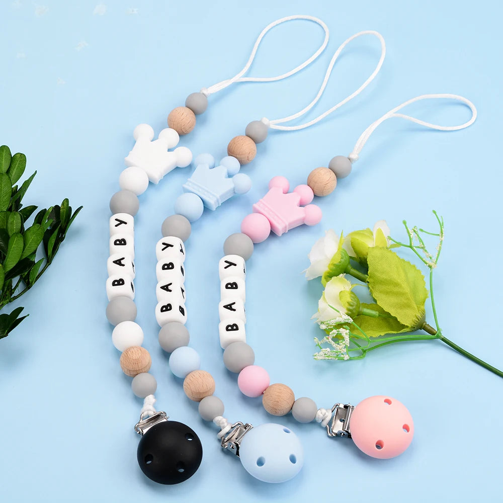 Dieser handgefertigte Schnullerclip aus BPA-freien Silikonperlen hält den Schnuller sicher und zugleich stilvoll. Der Name des Babys wird individuell integriert, sodass ein einzigartiges Accessoire entsteht, das sowohl praktisch als auch dekorativ ist. Perfekt für unterwegs, damit der Schnuller nicht mehr verloren geht, und ein wundervolles Geschenk zur Geburt oder Babyparty.
